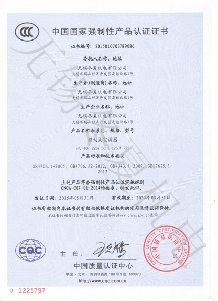 近日,开云手机站登录官方站入口-开云online(中国)的移动工业冷气机、暖风机产品7个型号取得了中国质量认证中心颁发的3C强制认证证书。